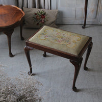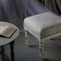 花模様にホワイトペイントが可愛らしいフットスツール イギリスアンティーク家具 椅子