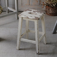 シャビーな白ペイントの可愛いスツール(高さ44cm) フランスアンティーク家具
