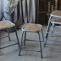 ブルーグレーペイントが可愛い小さなスツール(高さ25cm) イギリスアンティーク