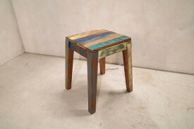 Antique/アンティークデザイン スツール/サイドテーブル フランスヴィンテージ 廃材 ピートへインイーク好きにも ウッド 木製 ペイント シャビーデザイン ペンキ 塗装 ウッドワーク stool sidetable 家具 カントリー Vintage/ヴィンテージデザイン 古材 1【中古】