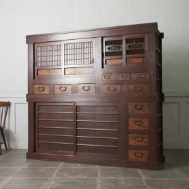近江箪笥 欅 水屋箪笥 六尺 和箪笥 茶棚 カップボード 食器棚 飾り棚 みざら戸 天然木 時代家具 収納家具 和家具 引き戸 引出し IZ81586N