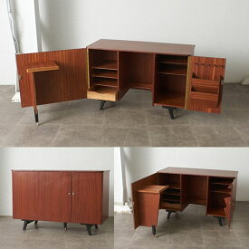 レア 英国 ヴィンテージ フォールディング デスク 鍵付 変形 机 書斎 勉強 引き出し キャスター 本棚 ファイリング キャビネット IZ87895N