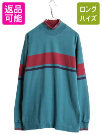 【12/1 24h限定10%OFFクーポン配布!】 80s USA製 エルエルビーン モックネック ボーダー 長袖 Tシャツ メンズ M / 80年代 ヴィンテージ LLBEAN ラガーシャツ 素材 ヘビーウェイト| 古着 中古 80's アメリカ製 ビンテージ LLビーン アウトドア ロンT ハイネック ラグビーシャ
