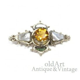 スコットランド製 ヴィンテージ ガラス 天然石 ピン ブローチ スターリングシルバー 銀製【M-14033】【中古】【送料無料】