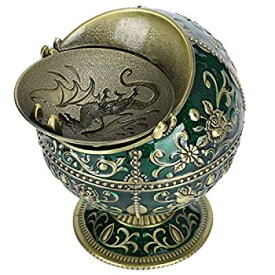 【中古】【輸入品・未使用】ヴィンテージ風 装飾用 防風灰皿 蓋付き 金属製 ポータブル 葉巻 灰皿 消臭 屋内 屋外 手彫り スタンド 幸運の象 ファンシーギフト オーナメント
