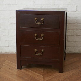 中国家具 楡材 チェスト 3段 引出し 収納家具 小引き出し 小物入れ サイドチェスト 箪笥 アンティーク スタイル アジアン 木製 79766