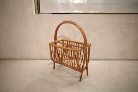 ブックスタンド ラタン マガジンラック ブックシェルフ 日本 ジャパンメイド 本棚 本立て Vintage/ヴィンテージ Antique/アンティーク 竹 バンブー 天然素材 籐 民藝 民芸 民具 France ブロカント ミッドセンチュリー家具 フレンチアンティーク ペリアン 本収納 【中古】