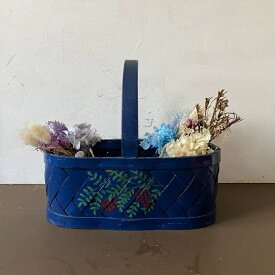 【USED】フィンランド ハンドルつきバスケット ブルー 赤い実 かご ハンドペイント カゴ 籠 持ち手つき 取っ手つき 木製 ベリー BOX ボックス 雑貨【海外直輸入USED品】