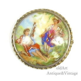 France製 1950年代 フランス LIMOGES ヴィンテージ オーバル型 ブローチ【N-21746】【中古】【送料無料】