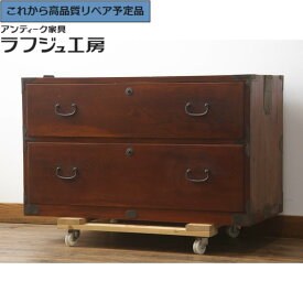 ★事前問合せ必須★ 和製アンティーク 明治大正期 二本松箪笥ローチェスト 総桐材 ローボード 引き出し 衣装箪笥 整理タンス 時代箪笥 収納たんす テレビ台 テレビボード 和風 和モダン レトロ リビング 収納 和室 寝室 店舗 木製 キリ材 ラフジュ工房 送料無料 r-071302