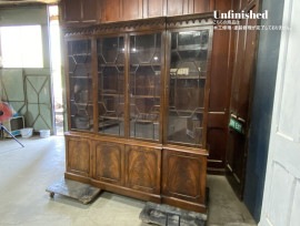シノワズリスタイルのステンドグラス扉がおしゃれな英国から届いたアンティークの本棚